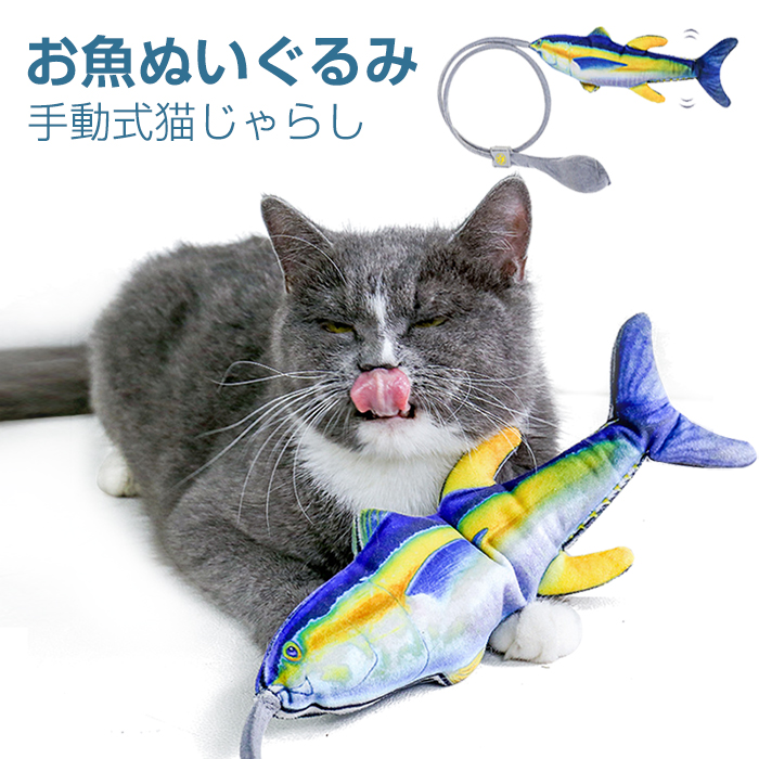 手動式 猫じゃらし 魚型 ぬいぐるみ 運動不足 ストレス解消対策ペット ペットグッズ 猫用品 おもちゃ 猫じゃらし