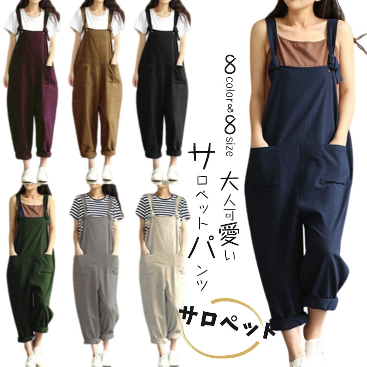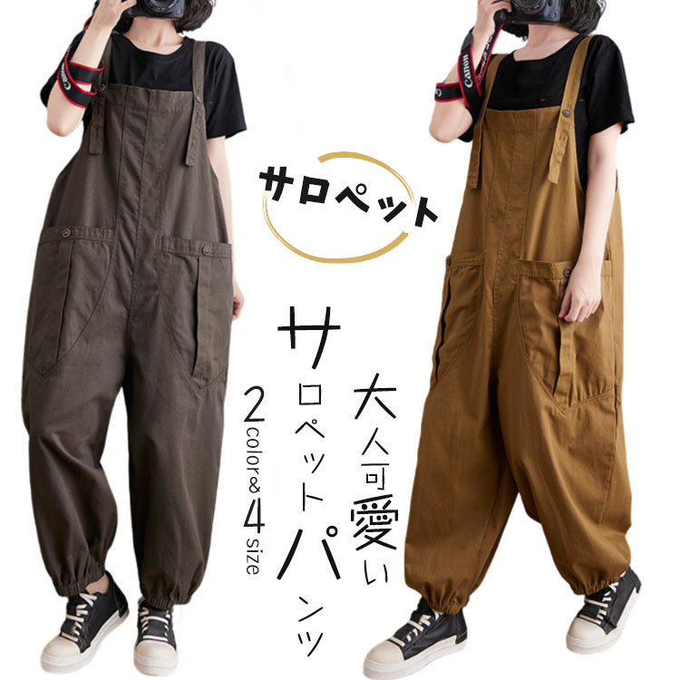 レディース サロペットパンツ オールインワン オーバーオール ワイドパンツ ジャンパー パンツ サスペンダー ズボン ロングパンツ