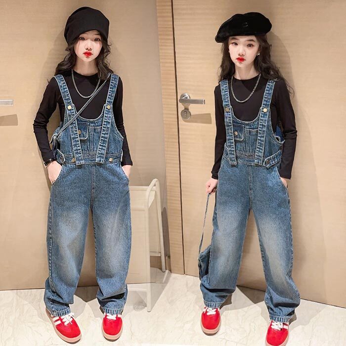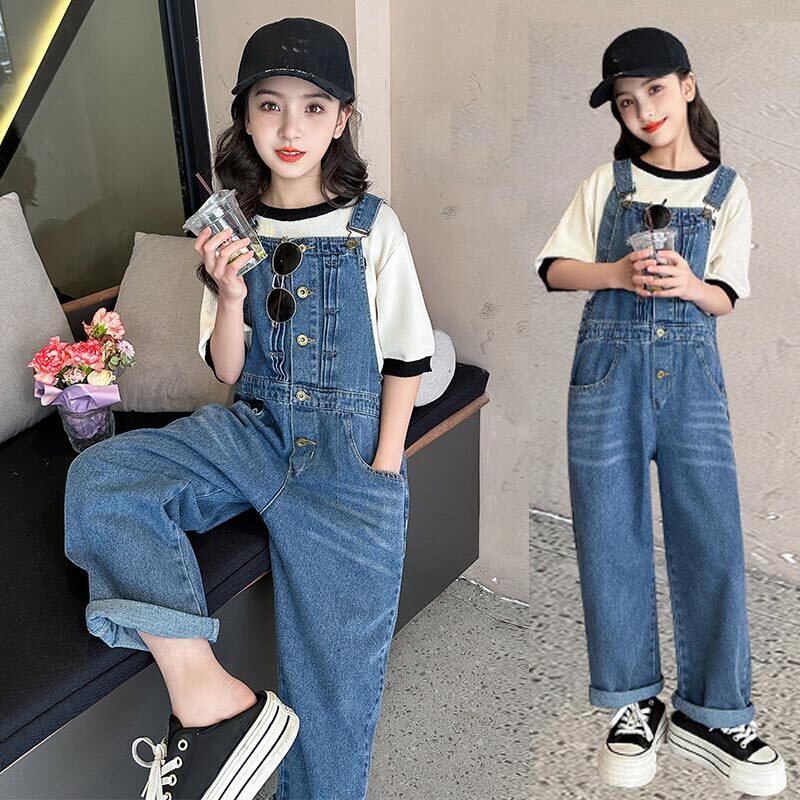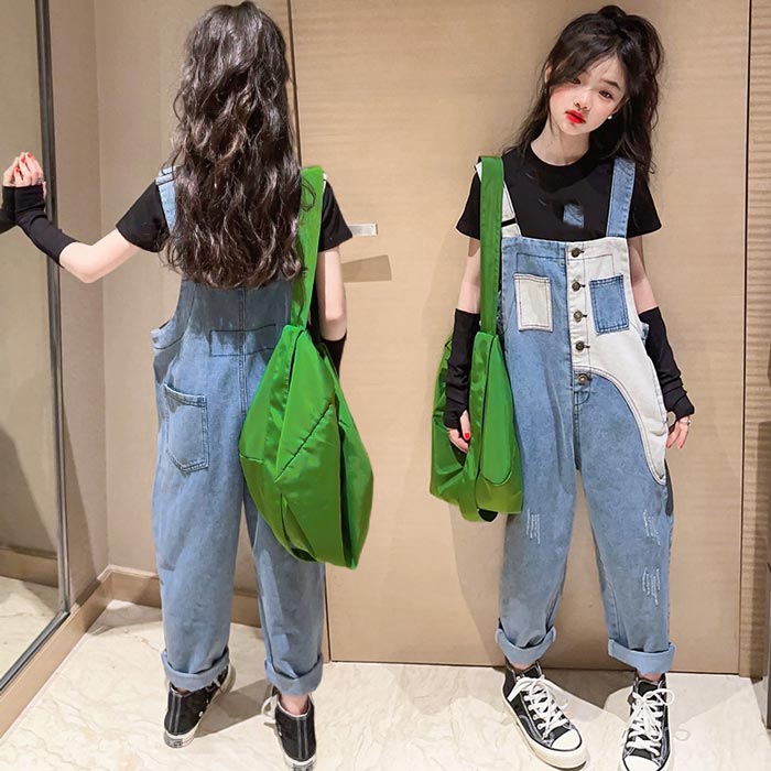 サロペット デニム パンツキッズ ジュニア ジーンズ子供服 ボトムス オーバーオールロングパンツ 長ズボン 花嫁