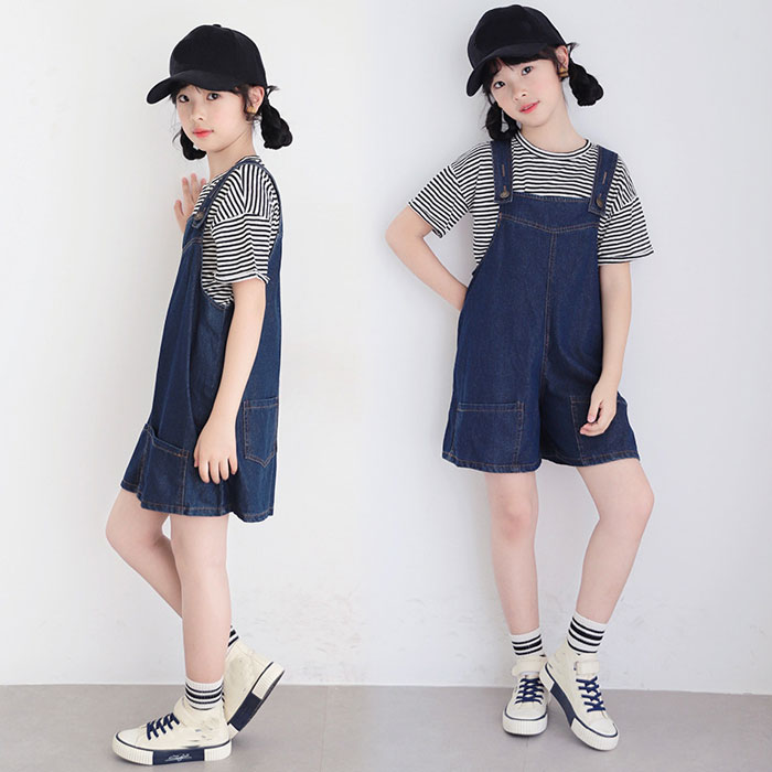 子供服 オーバーオール キッズ サロペット 韓国 子供服 2点セット女の子シャツ ジュニアオーバーオール韓国サロペット デニム パンツ