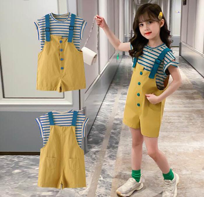 ボーダー柄 半袖 tシャツ キッズ オーバーオールショートパンツ 韓国子供服 サロペットキッズ ベビー マタニティ キッズファッション スーツ カジュアルセットアップ カジュアルパンツセット