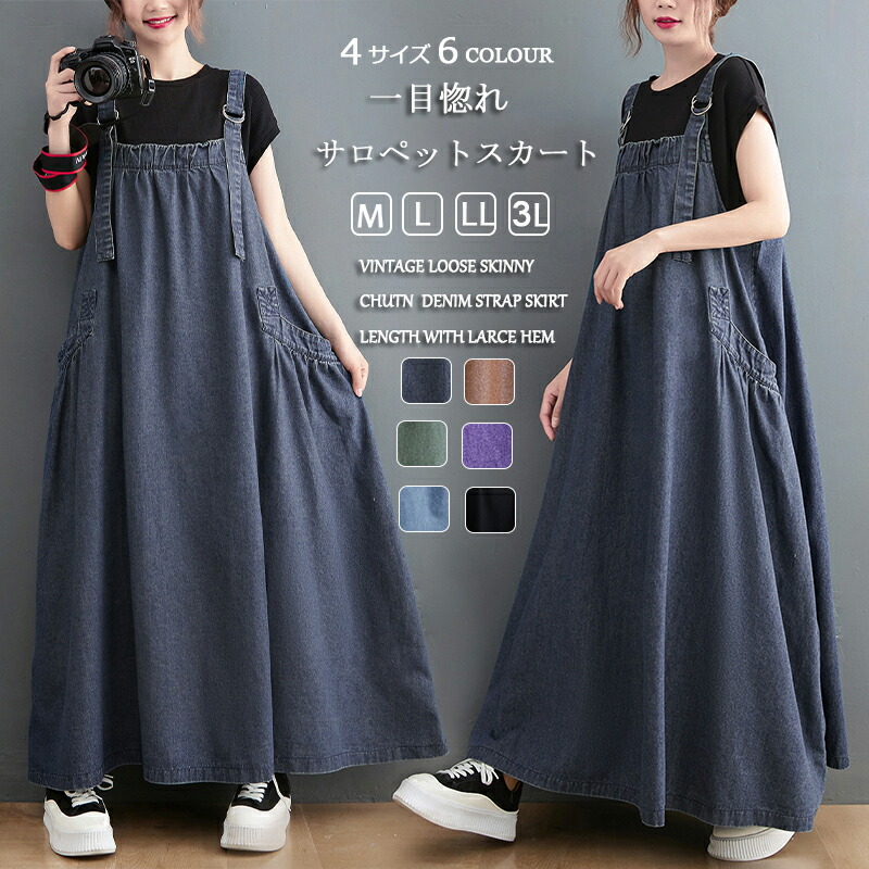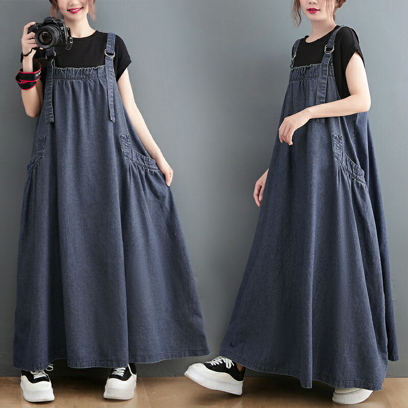 ジャンパースカート デニム サロペット ワンピース 夏 ロング丈 ゆったり 大きいサイズレディースファッション ジャンパースカート