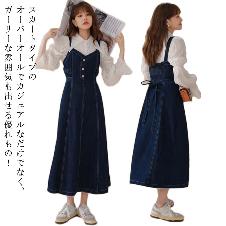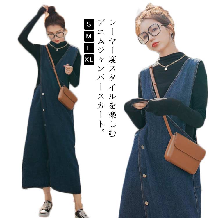 ジャンパースカート レディース 大人 スカート サロペット トレンド 春 デニムワンピース 秋 キャミワンピース 大きいサイズ ロング丈 オールインワン 夏 可愛い 重ね着 アシメトリー デニム