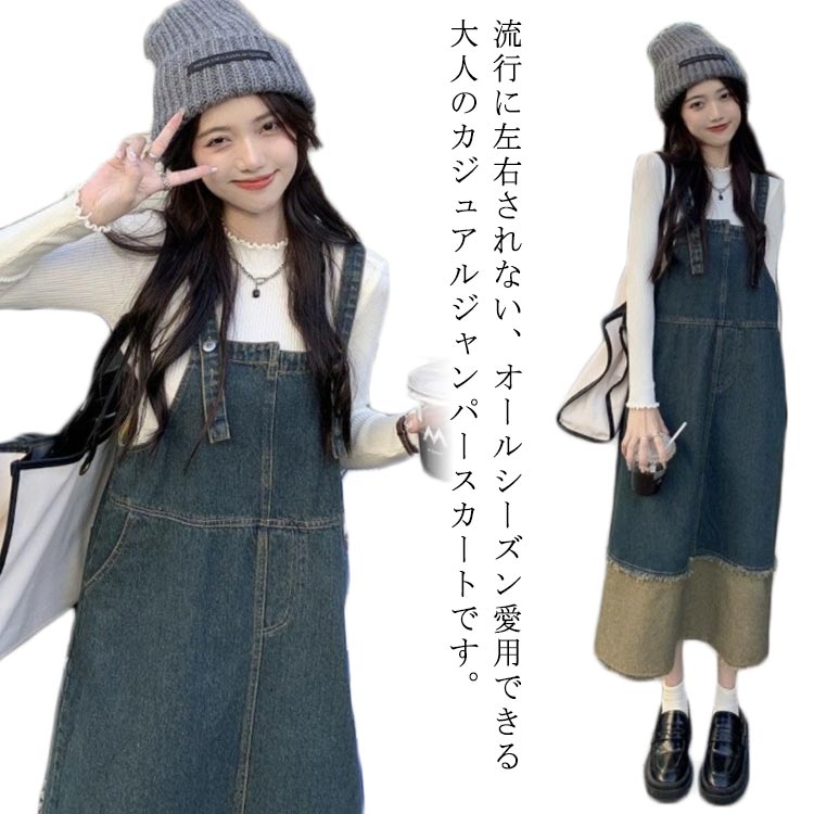 ロング デニム サロペット ジャンパースカート 春 ワンピース 夏 重ね着 カジュアル 大人 ミモレ丈 シンプル オーバーオール 秋 サロペット スカート 可愛い おしゃれ 大きいサイズ レディース