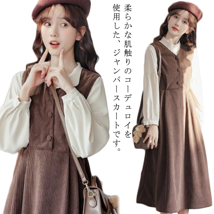 ワンピース スカート レディース キャミワンピース オールインワン 無地 コーデュロイ サロペット ジャンスカ 重ね着 春 秋 Aライン 大人 可愛い きれいめ ロング丈 カジュアル ミモレ ジャンパ