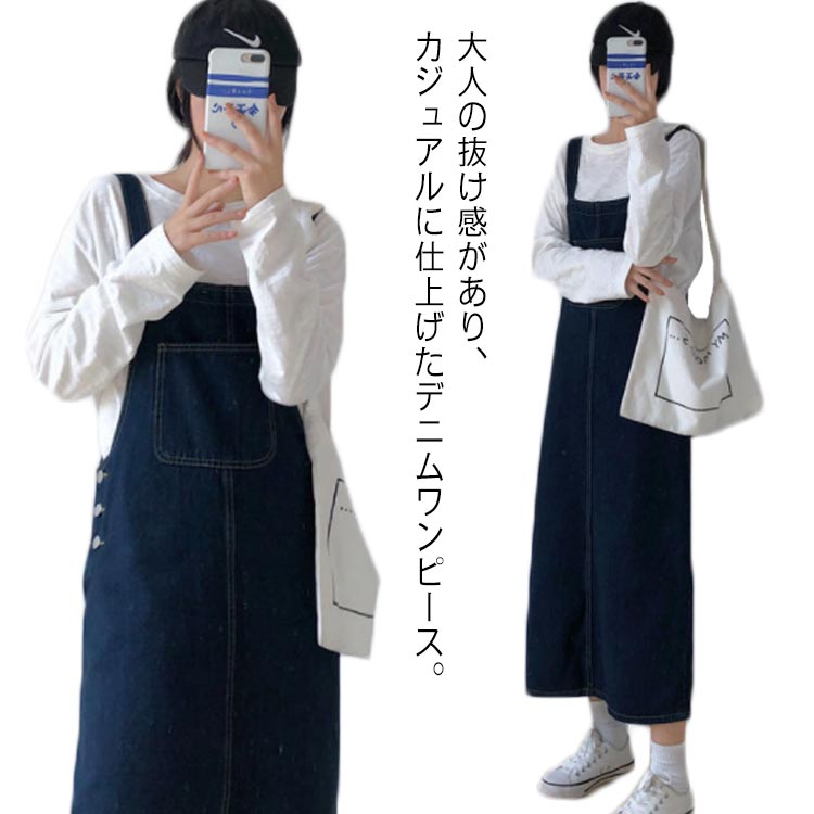 ナチュラル ロングワンピ ジャンスカー ロングワンピ デニムワンピレディースファッション オールインワン サロペット