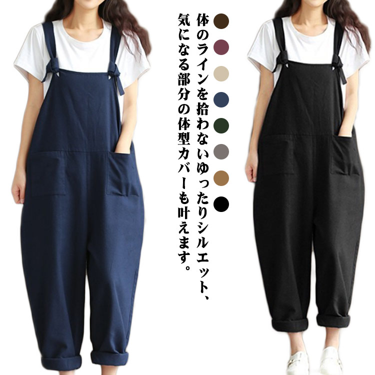ワイドパンツ レディース ボトムス サロペット 楽ちん ワイドサロペット 春夏 上品 大人 ポケット 9分丈 秋 ゆったり おしゃれ オーバーオール 無地 カジュアル 大きいサイズ 綿 オールインワン