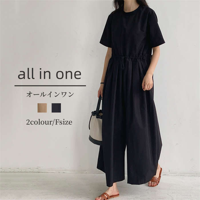 人気新作 春夏に 頼れる1枚 オールインワンパンツ All-in-one ベージュ ブラック 黒 フリーサイズ F 10代 20代 30代 40代 50代 普段使い デート 通学 通勤 夏休み ママ