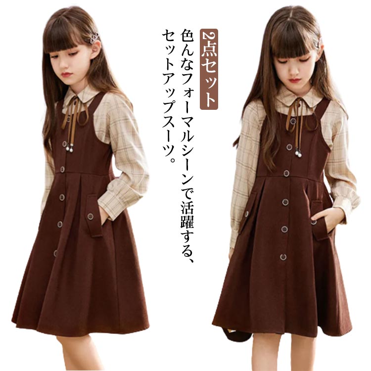 子供 キッズ 2点セット シャツ ジャンパースカート 春 ワンピース チェック柄 フォーマル サロペットスカート 女の子 秋 入学式 卒業式 通学 卒園式 女の子 スーツ ジュニア服 発表会 発表会