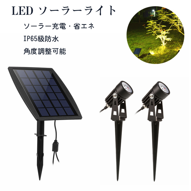 ソーラーライト 屋外 ガーデンライト アウトドア 防犯ライト スポットライト 太陽光パネル充電 分離式 防犯対策 65防水