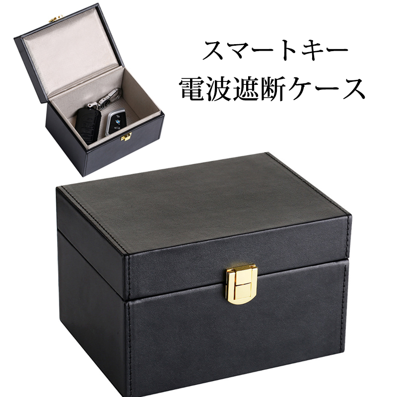 スマートキー 電波遮断ケース リレーアタック防止 信号遮断 電波遮断ボックス 車盗難防止 防犯対策 電波遮断ポーチ PUレザー