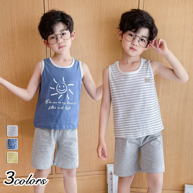 パジャマ キッズ ルームウェア 子供服 夏 寝巻き 部屋着 ベスト 半ズボン 短パン ショートパンツ 上下セット コットン 薄手綿 110 120 130 140 150 160 ベビー 男女兼用